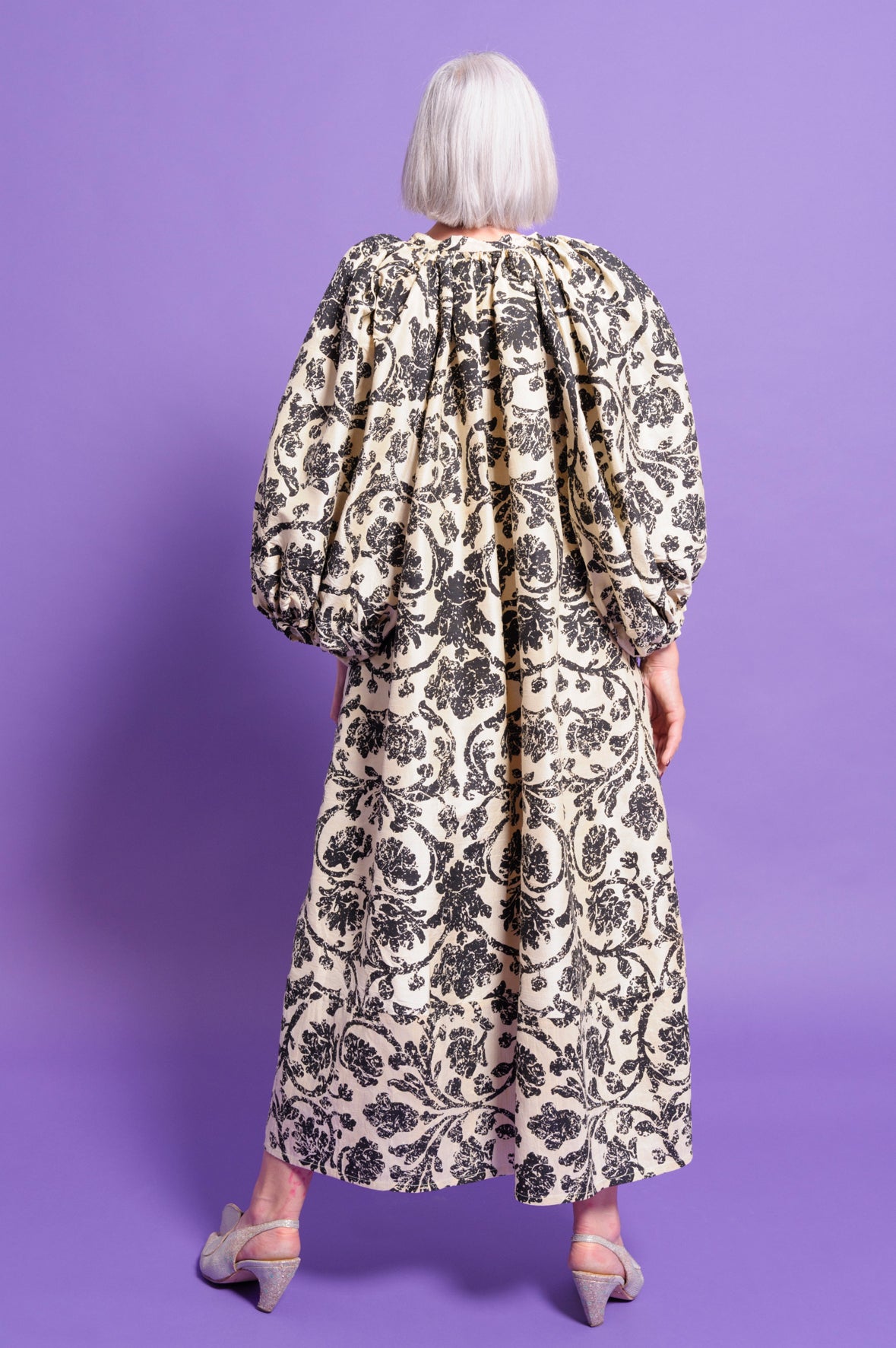 - Vestido de fit holgado, mangas globo y voluminosas